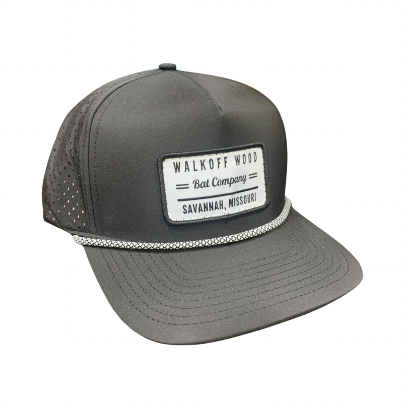 Walkoff Wood Bat Co. - Flat Bill Black Rope Hat with Woven Logo Patch