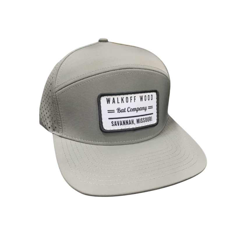 Walkoff Wood Bat Co. - Flat Bill Gray Hat with Woven Logo Patch